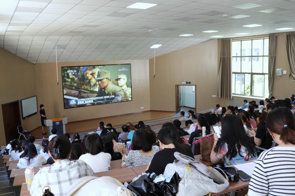 张程程以“光辉的形象 伟大的精神——从典型人物看沂蒙精神内涵”为主题,从沂蒙精神的特质、沂蒙精神的形成发展、新时代沂蒙精神的传承三个方面讲述了不同时期沂蒙精神典型代表的感人故事。四儿一女送战场的王步荣、爱国拥军好妈妈胡玉萍、乳汁救伤员的红嫂明德英、抚养多名革命后代的沂蒙母亲王换于、用身体搭起女子火线桥的李桂芳……一个个鲜活的事例、一段段生动的故事感动了在场的所有师生,充分展现了革命战争年代沂蒙根据地军民团结一心、拥军支前、奋勇抗战的姿态,真实地还原了当时在战火纷飞中水乳交融、生死与共的军民之情,诠释了沂蒙儿女吃苦耐劳、勇往直前、爱党爱军、无私奉献的精神品质,引起了在场师生的强烈共鸣。整个报告饱含深情、催人泪下,尤其在讲到时代楷模赵志全的先进事迹:“他用27年时间,把一个净资产19万元、濒临破产的小厂,发展成为一个净资产60亿元、年缴税9.2亿元,具有国际竞争力的现代制药集团公司,为振兴民族医药、促进地方经济发展作出了突出贡献……”让师生真切感受到了赵志全同志作为一名党员的使命担当和无私奉献的宝贵精神。