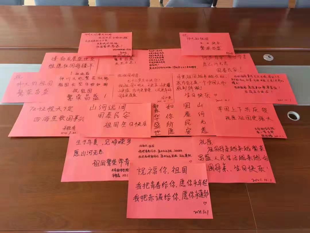研究生第二党支部在组织委员的带领下,全体党员观看记录片,共同回顾祖国72年来曲折的发展史。新中国成立前夕及新中国成立后,无数先烈们不断尝试、不断探索,最终中国共产党带领中国人民找到一条适合中国发展的道路——中国特色社会主义道路。通过观看短片,同学们领悟到祖国取得如今举世瞩目的诸多成就都是一代又一代努力拼搏的中国人奋斗出来的。随后,各位同学在祖国华诞之际,亲手写下对祖国的祝福,共祝祖国的繁荣富强,生生不息!全体党员手举自己写下的祝福语,齐唱《义勇军进行曲》,表达自己对祖国的深厚感情。研究生第二党支部党员同志们表示,今日中国的成就来之不易,精神弥足珍贵。作为新时代青年党员,更应该着眼于自身为祖国的发展做出自己的贡献,要戒骄戒躁,认真参加党支部活动,积极为支部建设、麻豆
