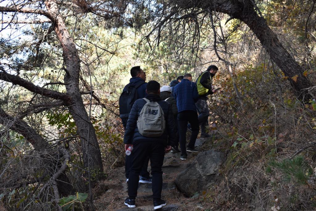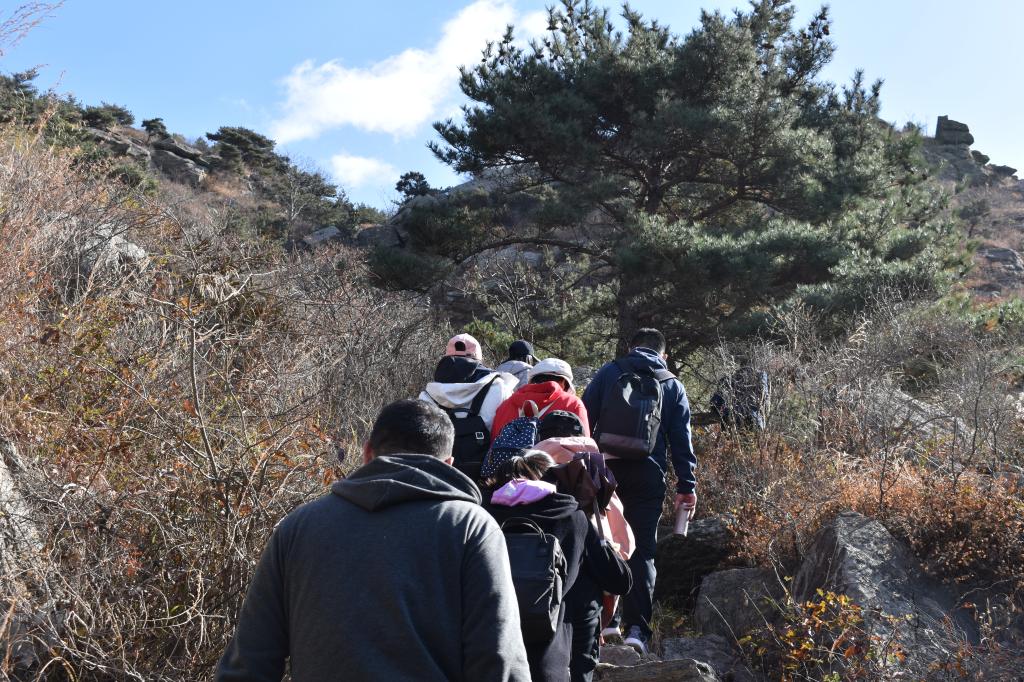 精心准备的“意外惊喜”。登山途中,大家相互鼓励、相互扶持,既欣赏到了“树树皆秋色,山山唯落晖”的深秋山图景,又领略到了“蒹葭苍苍,白露为霜”的自然唯美气息。最后大家还和校友进行了亲切的交流,收获满满。