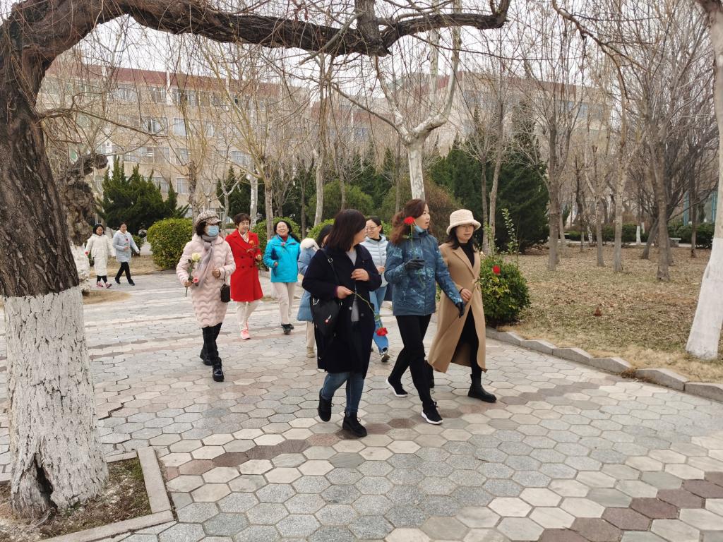 门口集合,院长邬旭然发表致辞,鼓励教职工积极参加体育锻炼,祝福老师们节日快乐。大家从院馆门口出发,环绕三元湖行走,在路途中,大家抛掉烦恼,释放压力,欢声笑语,健步而行。一边欣赏着三元湖的春景,呼吸着新鲜空气,一边享受着健步走带来的激情活力,享受着运动的魅力。女教职工们健步走的队伍形成了麻豆