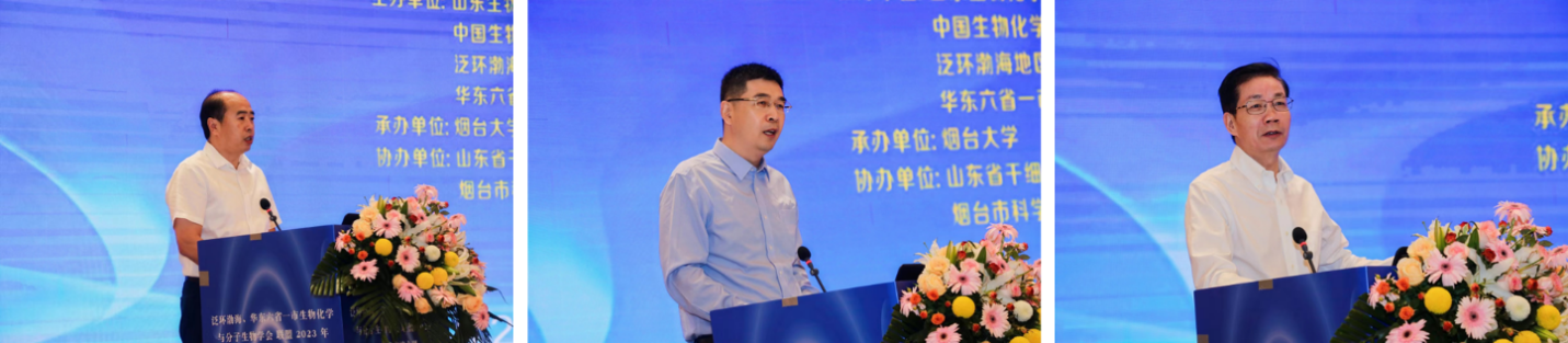 副校长郝曙光代表承办单位致欢迎辞,对与会专家和学者的到来表示热烈欢迎,并预祝大会取得圆满成功。山东生物化学与分子生物学会理事长刘思金和中国生物化学与分子生物学会副理事长陈国强院士分别致辞,表达了学会对本次会议的肯定和支持,并希望与会学者能以本次会议为契机,针对相关领域的学术前沿展开研讨交流。