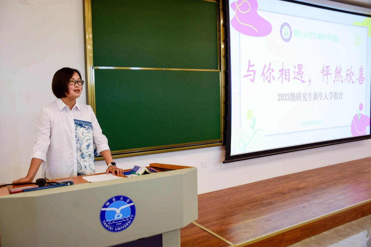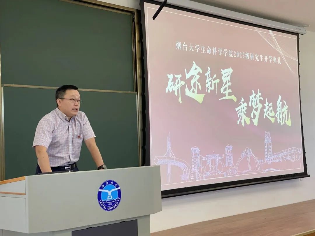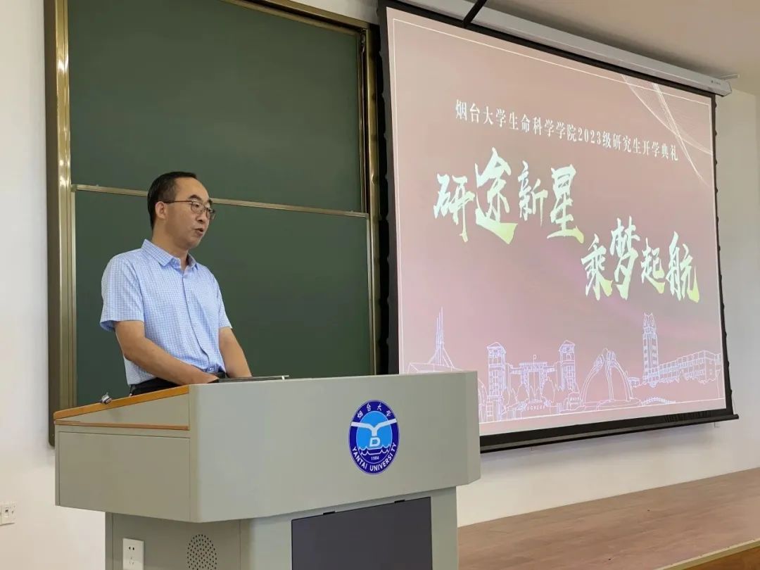 的发展历程、学位点与研究生培养、师资队伍与科研实力等方面向同学们做了详细的介绍,鼓励同学们树立科研信心,培养奋勇攀登的学术品质。导师代表王绪敏结合自身经历与大家分享读研经验,希望同学们尽快适应研究生的新身份,培养独立思考的习惯,脚踏实地做有深度的创新研究。新生代表杜永铎说:“作为一名13级的本科生,作为一名23级的研究生,更作为一名老生科人,我感到无比的骄傲与自豪。希望同学们作为生科人在接下来的三年中不懈探索、踔厉奋发,怀揣对世界的热爱,在麻豆