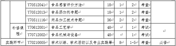 同等学力或跨专业攻读“食品加工与安全”领域农业硕士专业学位的研究生,在导师的指导下,应补修相关领域本科阶段的主干课程2门,成绩不计入总学分。