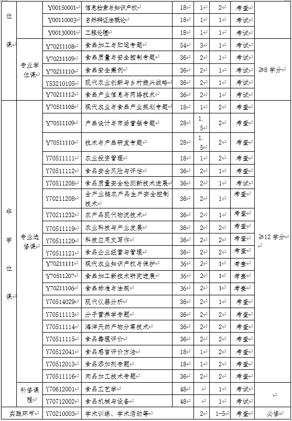 “食品加工与安全”领域农业硕士专业学位研究生,需完成课程学习及培养环节,取得规定学分,并通过学位论文答辩者,经校学位评定委员会审核通过,授予农业硕士专业学位,同时获得硕士研究生毕业证书。