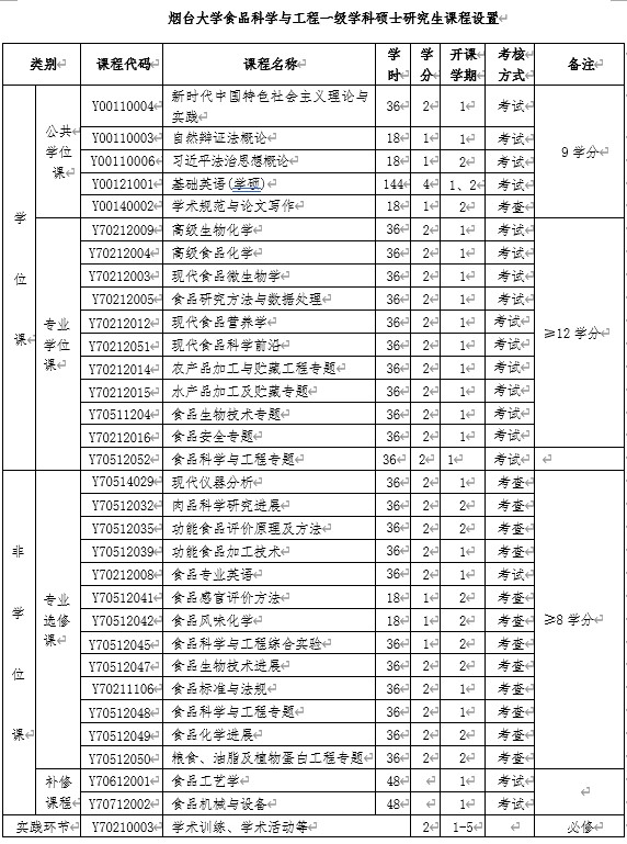 食品科学与工程专业硕士研究生课程设置》(附后)